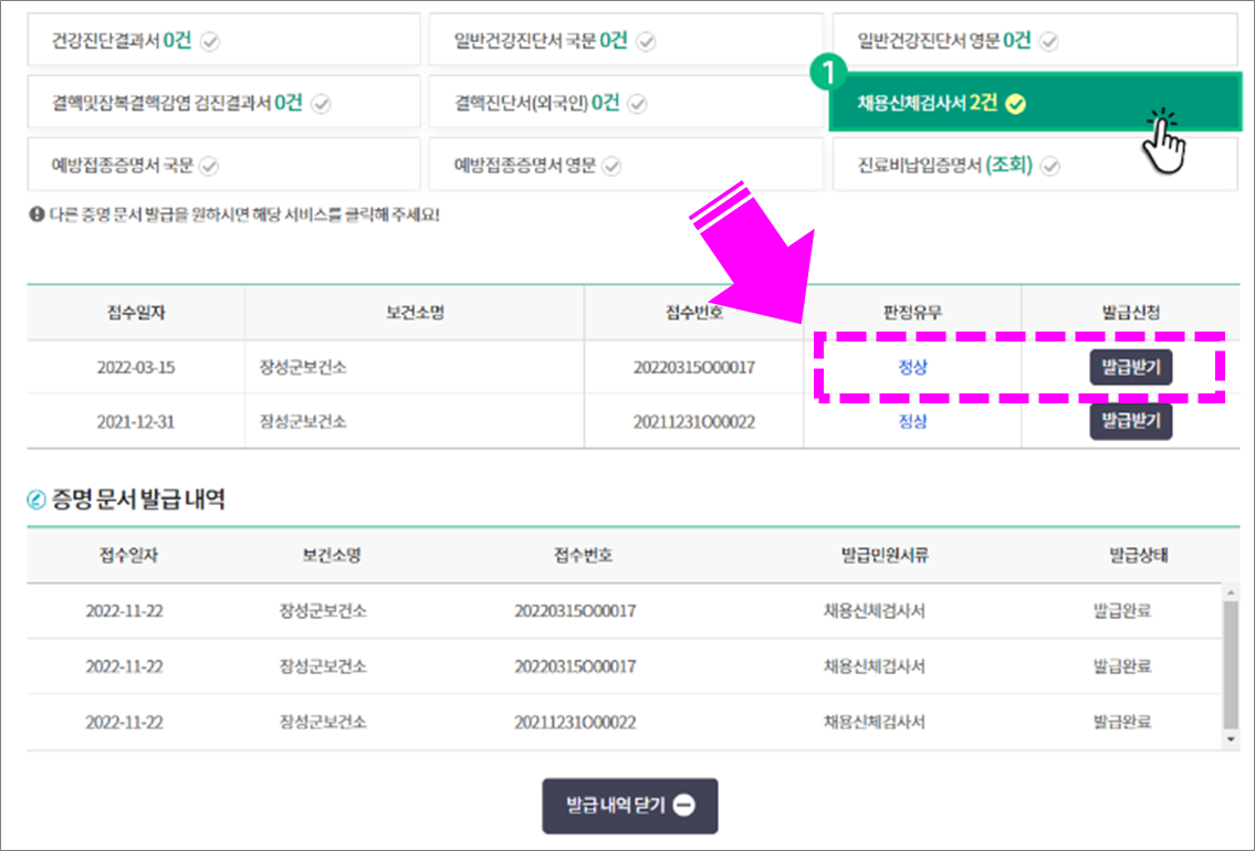 인터넷으로 발급하는 방법은 순서대로 해보시면 보건소까지 내방하지 않고도 집에서 간단하게 발급할 수 있습니다.