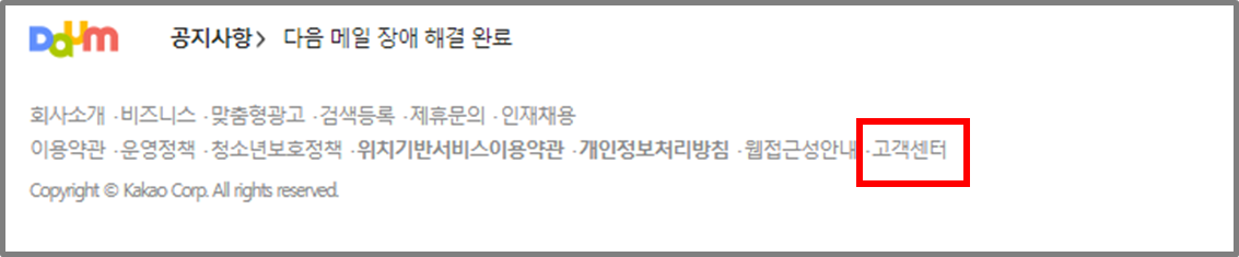 ② 홈페이지 맨밑 고객센터 클릭