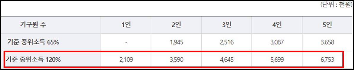 ▪ 소득기준 : 기준 중위소득 120% 이하
